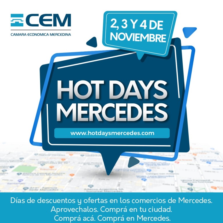 Nuevamente los comercios nucleados en la Cámara Económica Mercedina llevarán adelante una propuesta para los clientes que les permitirá conseguir descuentos y promociones especiales por tres días. Se trata de la segunda edición del «Hot Days Mercedes». En esta oportunidad, se hará los días 2, 3 y 4 de noviembre.