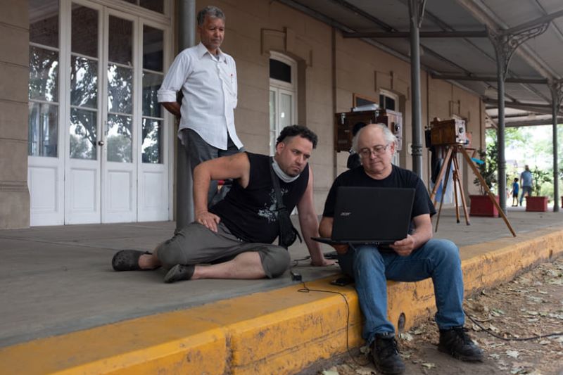 Cada uno, desde un lugar representativo de su ciudad, instaló la cámara minutera (las clásicas de cajón que utilizaban los fotógrafos en la primera mitad del siglo XX), y a su lado una computadora con acceso a internet les permitía conversar con los otros fotógrafos.