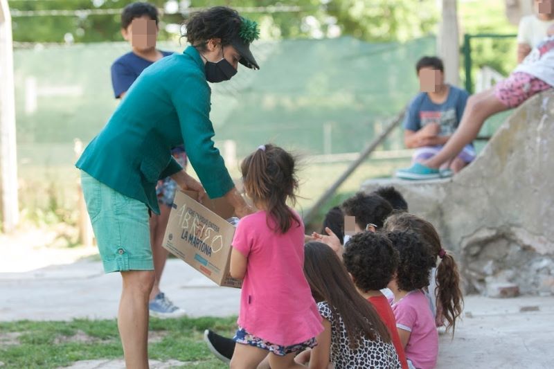 Las referentes del área municipal visitaron el Hogar Abrigo «Abelito» en el ex Instituto Unzué, luego el Instituto Lowe, para posteriormente hacerse presente en el Hospital Blas L. Dubarry y finalizar la recorrida en el Complejo Cultural La Trocha. Megáfono en mano convocaban a los pequeños y repartían cartas y kits con materiales lúdicos y didácticos.