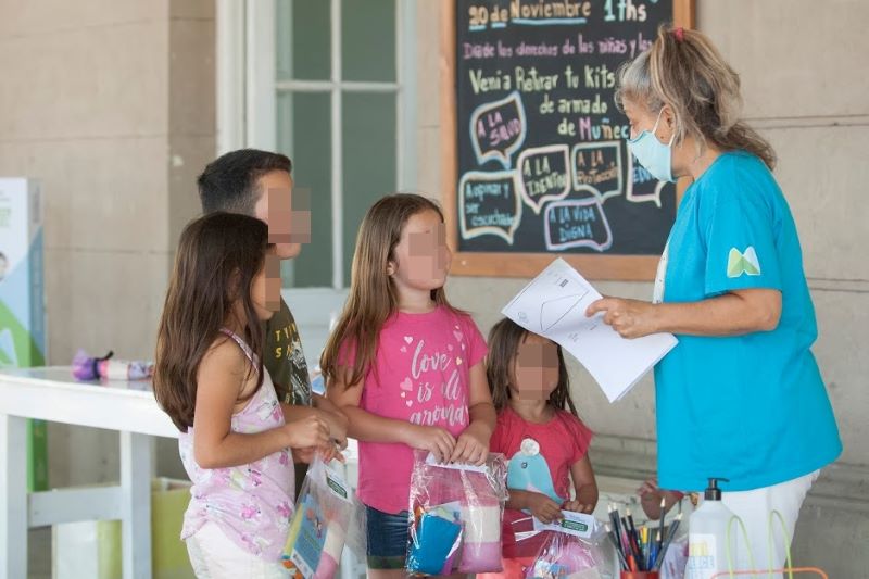 Los kits “están desarmados” afirmó Andrea Moleres y contó que “son muñecos especialmente elaborados en el taller comunitario de costura” mencionando que “es parte de las actividades de Desarrollo Social. En este caso se entregan los materiales y el muñeco tiene la función de quitapena, amuleto y guardador de secretos, por ejemplo, sostuvo quien es parte del equipo de niñez conducido por Gabriela Olivella. Por su parte, Moleres agregó que “fueron cocidos en el taller de la Casa de la Mujer que coordina Mariela Morelli”