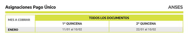 La ANSES informa los calendarios de pago del mes de enero para jubilados y pensionados, Pensiones No Contributivas, beneficiarios de la Asignación Universal por Hijo y por Embarazo, de la Prestación por Desempleo y Asignaciones Familiares y de Pago Único (Matrimonio, Nacimiento y Adopción).