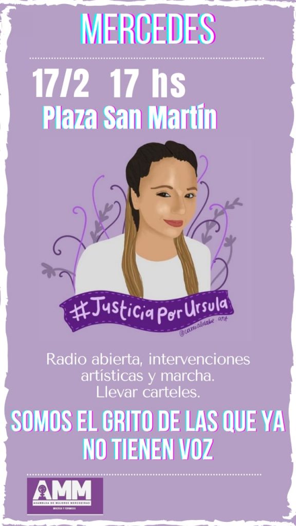 “Hay que comenzar a evidenciar las fallas del sistema judicial y de los funcionarios inoperantes que contribuyen a que se repliquen estos hechos cada vez más graves. Nos sumamos, porque en Mercedes no somos ajenos y también suceden estas irregularidades revictimizantes por las que pasó Úrsula», expresan desde la Asamblea de Mujeres.
