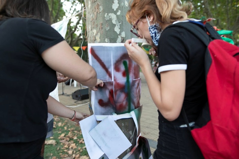 En la esquina que en el 2013, el colectivo Mujeres en Vuelo eligió para expresar su lucha contra la violencia de género, se renovaron los murales con mensajes que refuerzan y reafirman la denuncia de hechos que durante la pandemia se recrudeció.