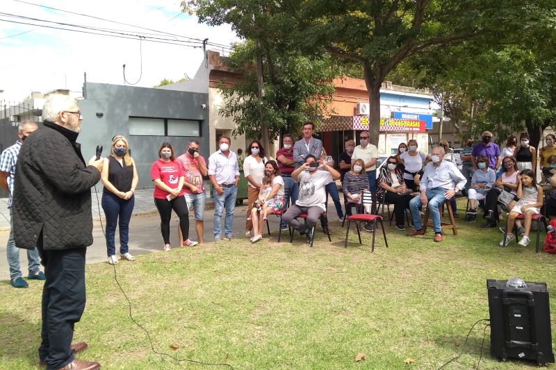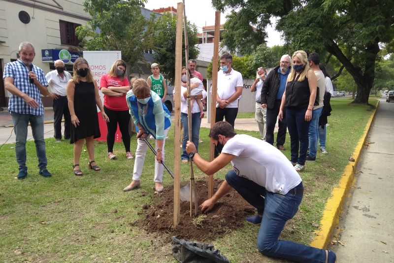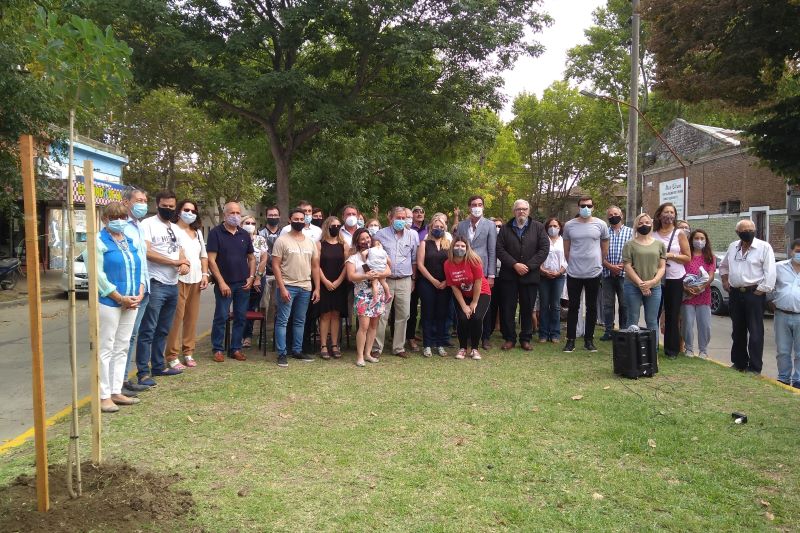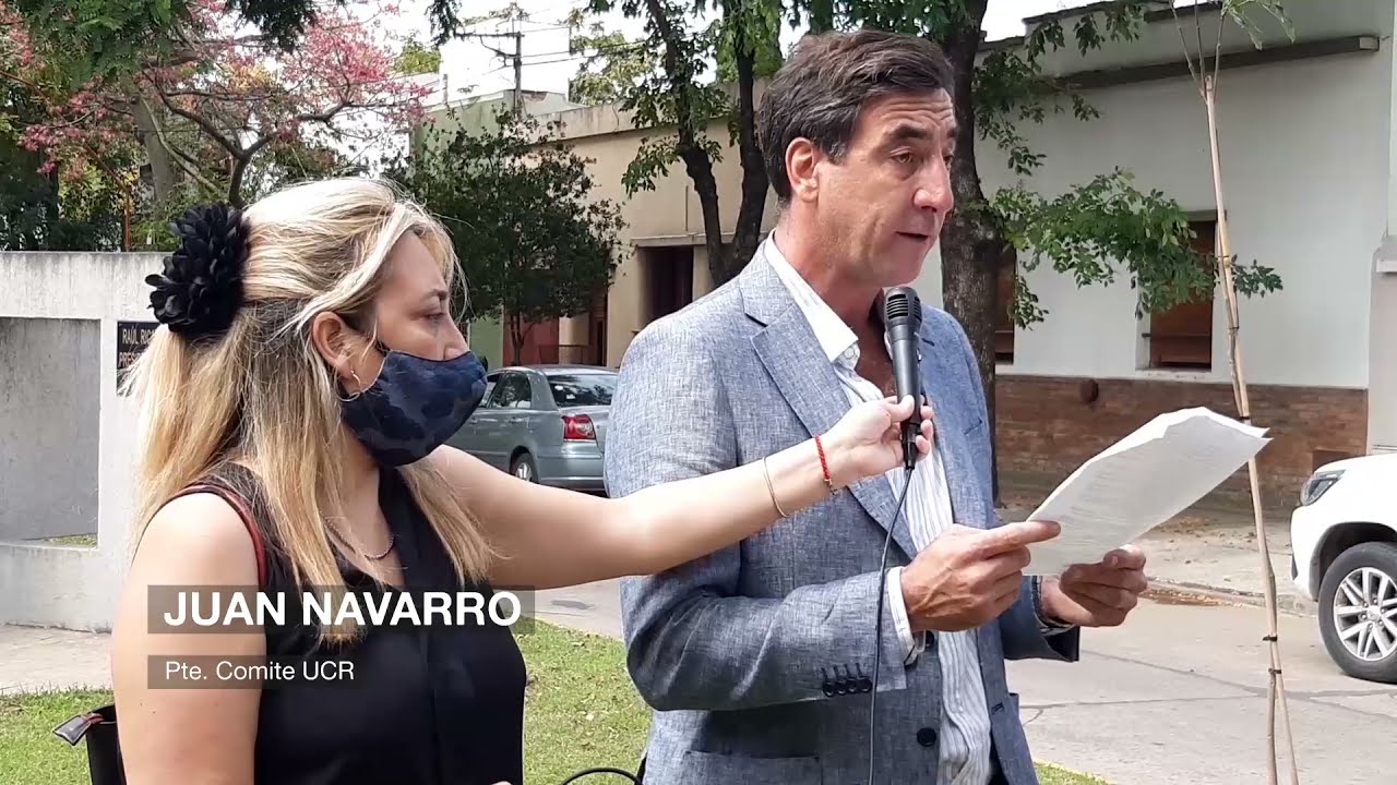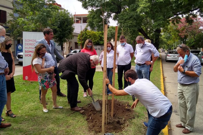 Acto UCR Mercedes. Plantan un árbol a la memoria de Raúl R. Alfonsín, a metros del monumento que lo recuerda. Las palabras del presidente de la UCR Mercedes, Juan Navarro. Están presentes entre otros el Senador Provincial Roberto Costa y el historiador y director del CBC de la UBA Jorge Ferronato. En los discursos destacaron la actuación de Raúl Alfonsín como abogado que presentaba «habeas corpus» durante la Dictadura y como Presidente de la Nación instando el Juicio a las Juntas. También se destacó el papel del Fiscal Strassera y la relevancia de Ernesto Sábato y la CONADEP.