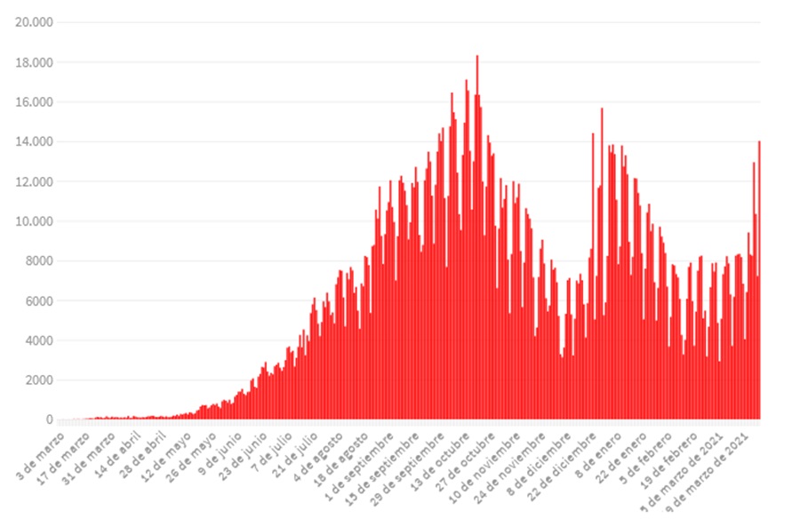 Como es habitual el Ministerio de Salud de la Nación informó este lunes 29 de marzo de 2021 que, en las últimas 24 horas, se registraron 163 muertes y 14.014 nuevos contagios para el virus que azota el país y el mundo.