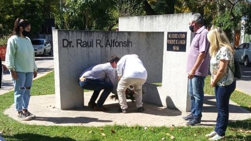 En el mediodía del día miércoles, un grupo de radicales de Mercedes se hicieron presentes en el monumento para hacer un breve y sencillo homenaje al ex presidente Raúl R. Alfonsín.