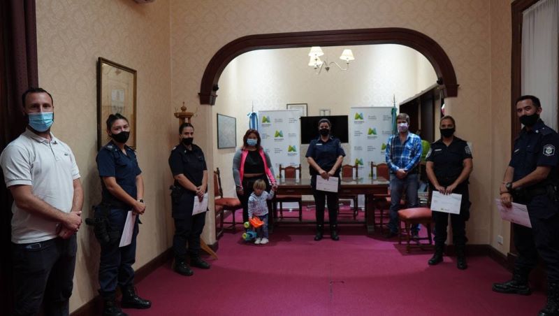 En el palacio municipal, el intendente Juan Ignacio Ustarroz citó a los policías y a la familila del pequeño para conversar con ellos y agradecer en nombre de la comunidad «la vocación de servicio, compromiso y cuidado» de los agentes hacia la comunidad. «El rol de cada uno de ustedes ha sido muy importante en esta situación, y creo que forma parte de lo que necesitamos en estos tiempos, mismos que son duros y difíciles donde tenemos que unirnos mucho como pueblo para salir adelante. A través de este humilde reconocimiento y presente, reconocemos ese camino difícil que emprenden diariamente», les expresó a los agentes policiales.