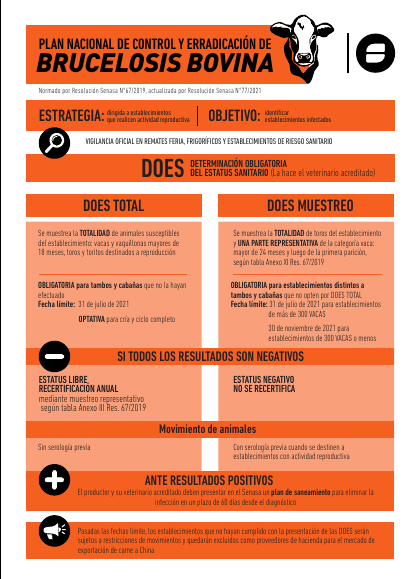 El Servicio Nacional de Sanidad y Calidad Agroalimentaria (SENASA) recuerda que, a la hora de trabajar a favor de la sanidad de su rodeo, todo productor debe aplicar el Plan Nacional de Control y Erradicación de Brucelosis Bovina.