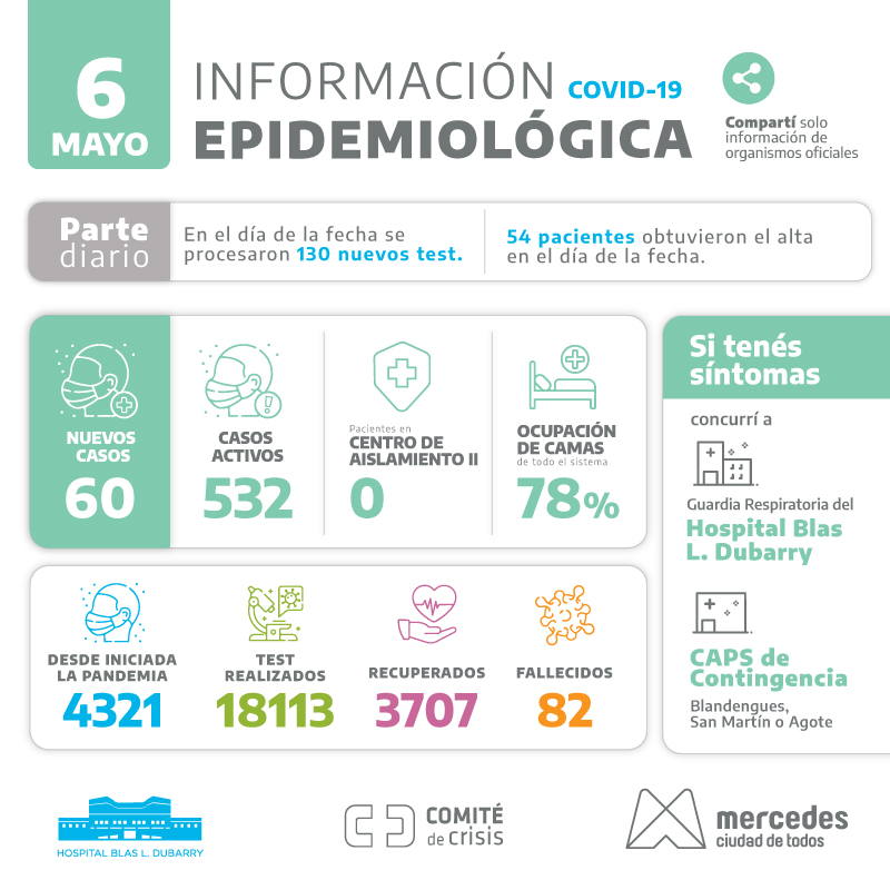 Mientras el Comité de Crisis toma medidas para el cuidado de la vida, se elevó la ocupación de camas y se vivió un día récord de contagios en Mercedes. En el marco de la segunda y gravísima ola de covid que vive el país y el mundo en el Laboratorio de Virología Molecular detectaron 60 nuevos positivos en un total de 130 testeos.