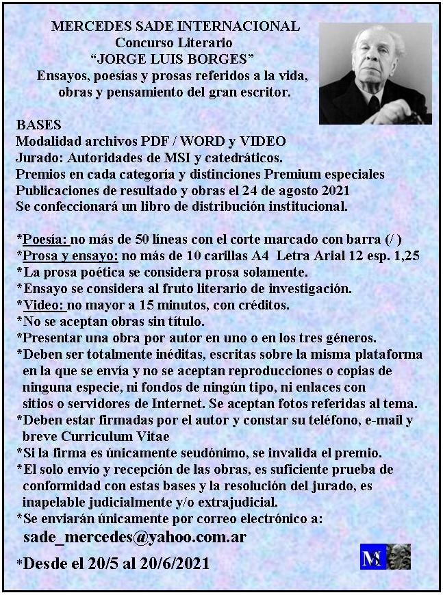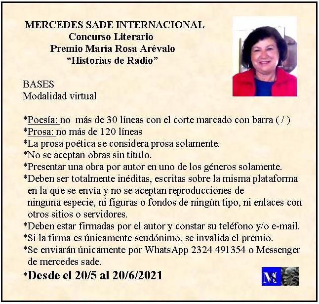 La participación en ambas propuestas es gratuita, abierta a todos. Los interesados pueden requerir las bases correspondientes por e-mail: sade_mercedes@yahoo.com.ar y al WhatsApp 2324 491354.