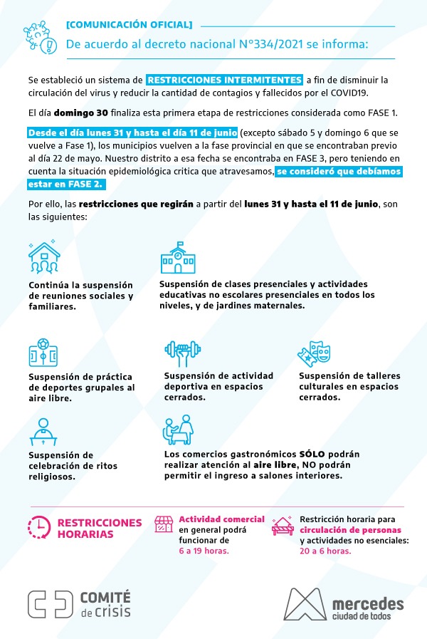 En Mercedes la situación epidemiológica es grave, como en todo el territorio bonaerense. En las últimas semanas superamos la frontera de los 100 fallecidos y miles de testeos con cientos de casos positivos. Ante ellos se determinó desde Provincia pasarnos de fase 3 a fase 2.