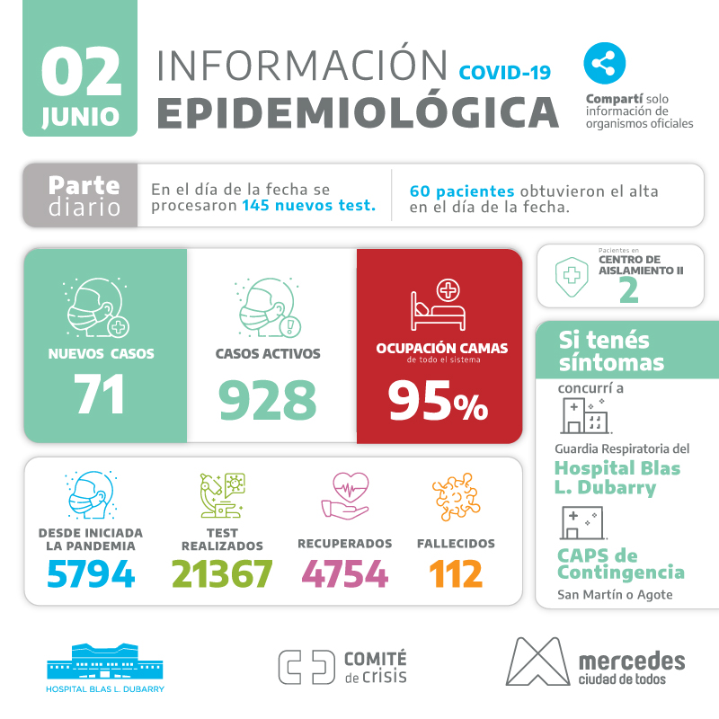 En cuanto a la ocupación de camas arriba 95% en terapia intensiva en el sistema de salud mercedino.