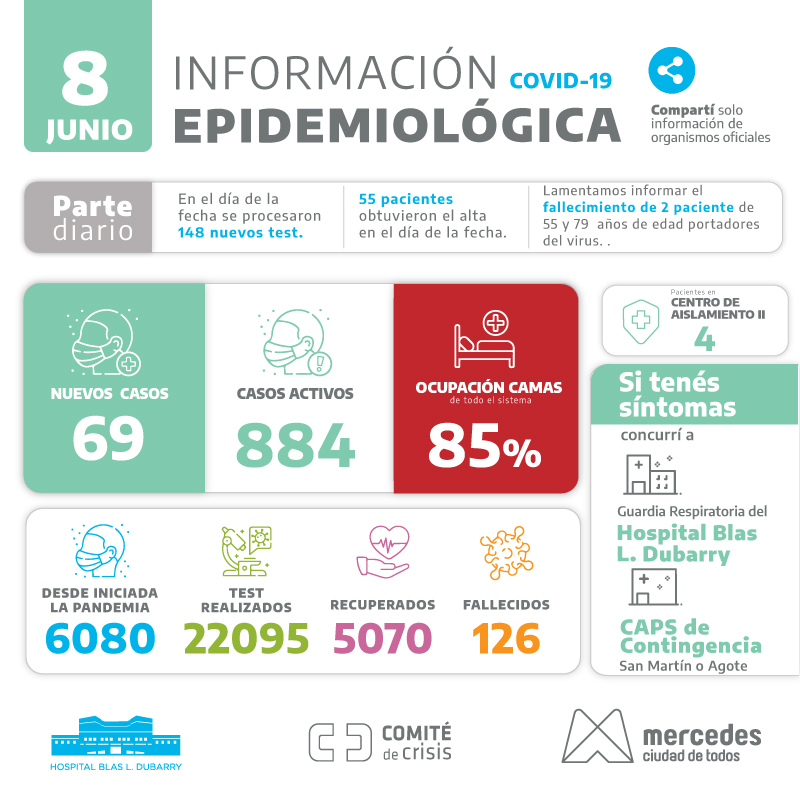 En cuanto a la ocupación de camas arriba al 85% en terapia intensiva en el sistema de salud mercedino.
