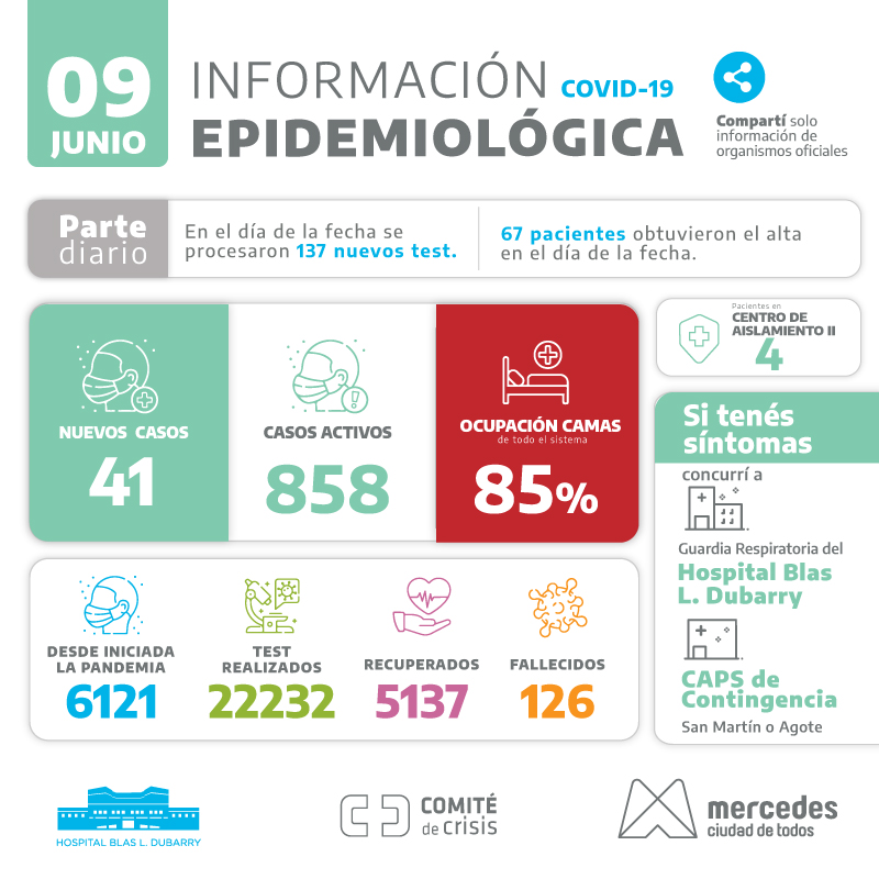 En cuanto a la ocupación de camas arriba al 85% en terapia intensiva en el sistema de salud mercedino.