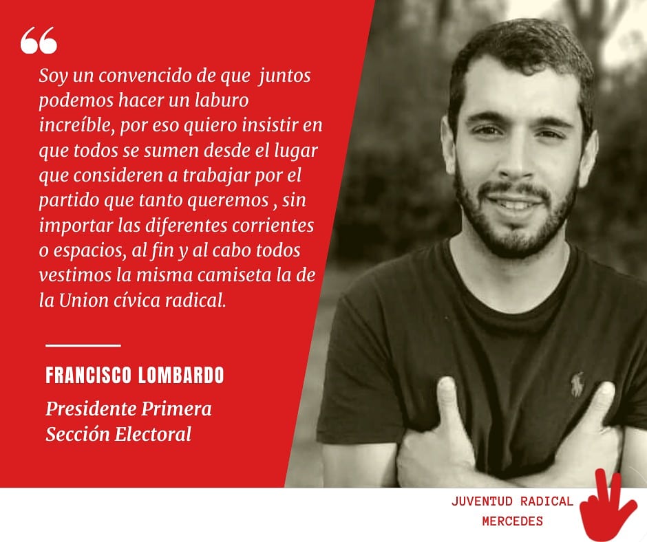 Días atrás se llevó adelante la renovación de autoridades de la Juventud Radical en la Primera Sección electoral. El referente de la JR Mercedes Francisco Lombardo asumió la presidencia por los próximos dos años. La autoridades de la primera sección son jóvenes de veinticuatro distritos de la región.