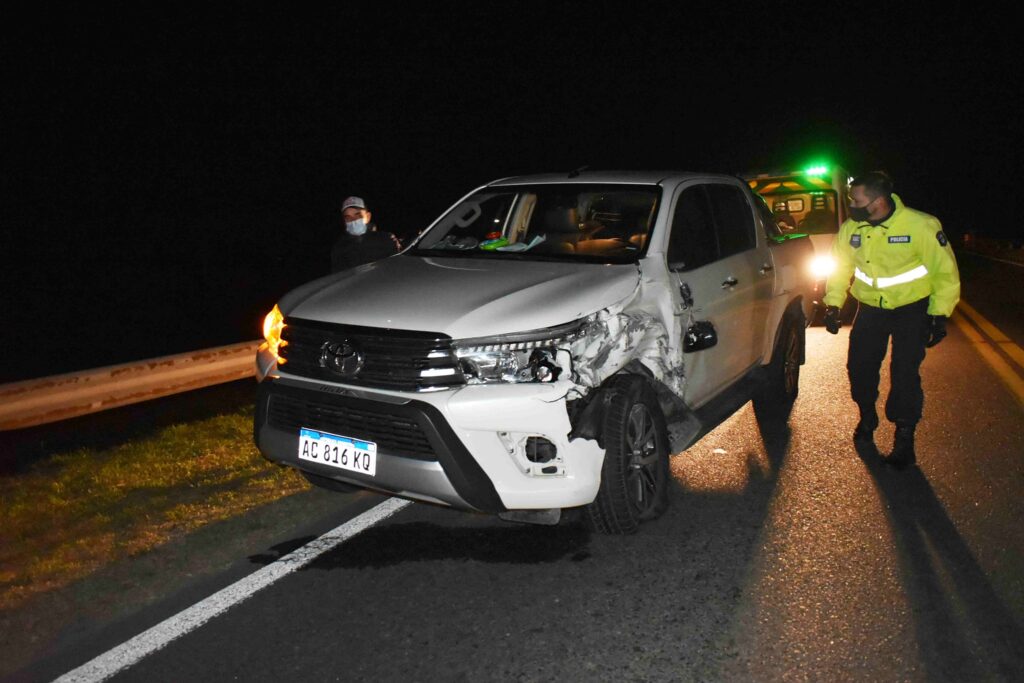 El informe registrado en la zona, expresa que la colisión se producjo minutos antes de las 19 del viernes. Participaron tres vehículos: Un automóvil Volkswagen Gol Tred color blanco, dominio PMN122, conducido por Carlos Ramirez, domiciliado en Avellanda; una Pick Up Toyota Hilux, color blanca, dominio AC816KQ, que era conducida por David Trepat , quien viajaba acompañado por su esposa Lorena Gimenez y el pequeño hijo de ambos de 2 años, todos domiciliados en Escobar; y una Pick Up Toyota Hilux, color blanco, dominio PEQ-571 , conducida por el suipachense Patricio Rivero.