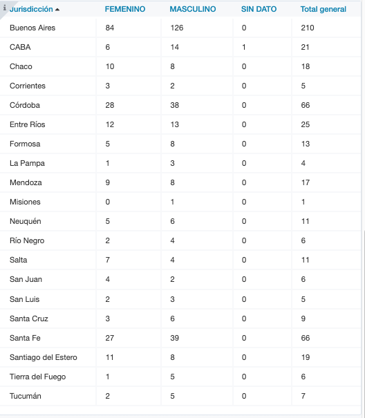 El reporte consignó que fallecieron 303 hombres y 222 mujeres, mientras que una persona de la Ciudad de Buenos Aires fue reportada sin dato de sexo. El parte precisó que murieron 126 hombres en la provincia de Buenos Aires; 14 en la Ciudad de Buenos Aires; 8 en Chaco; 2 en Corrientes; 38 en Córdoba; 13 en Entre Ríos; 8 en Formosa; 3 en La Pampa; 8 en Mendoza; 1 en Misiones; 6 en Neuquén; 4 en Río Negro; 4 en Salta; 2 en San Juan; 3 en San Luis; 6 en Santa Cruz; 39 en Santa Fe; 8 en Santiago del Estero; 5 en Tierra del Fuego y 5 en Tucumán. También fallecieron 84 mujeres en Buenos Aires; 6 en la Ciudad de Buenos Aires; 10 en Chaco; 3 en Corrientes; 28 en Córdoba; 12 en Entre Ríos; 5 en Formosa; 1 en La Pampa; 9 en Mendoza; 5 en Neuquén; 2 en Río Negro; 7 en Salta; 4 en San Juan; 2 en San Luis; 3 en Santa Cruz; 27 en Santa Fe; 11 en Santiago del Estero; 1 en Tierra del Fuego y 2 en Tucumán.