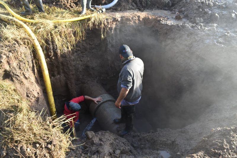 El Municipio de Mercedes informó que desde la madrugada los trabajadores de Servicios Públicos están reparando un caño maestro de agua corriente en cercanías del predio de obras sanitarias en 104 y 109.