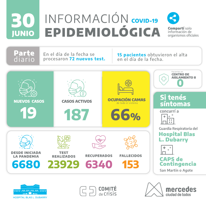 En cuanto a la ocupación de camas arriba al 66% en terapia intensiva en el sistema de salud mercedino.