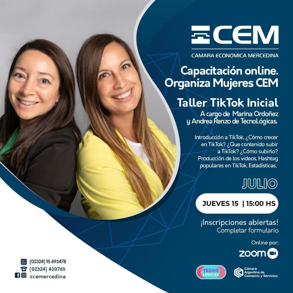 La Cámara Económica Mercedina, a través de la Subcomisión de Mujeres, brindará un taller virtual gratuitso sobre el manejo de la aplicación TikTok para emprendedores y comerciantes. La propuesta se hará el jueves 15 de julio, 15 horas, a través de Zoom. Está abierta la inscripción previa.