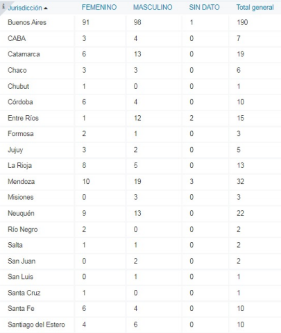 En total fallecieron 190 personas en la provincia de Buenos Aires, 7 en Ciudad de Buenos Aires, 19 en Catamarca, 6 en Chaco, uno en Chubut, 10 en Córdoba, 15 en Entre Ríos; 3 en Formosa, 5 en Jujuy, 13 en La Rioja, 32 en Mendoza, 3 en Misiones, 22 en Neuquén, 2 en Río Negro, 2 en Salta, 2 en San Juan, uno en San Luis, 1 en Santa Cruz, 10 en Santa Fe, y 10 en Santiago del Estero.