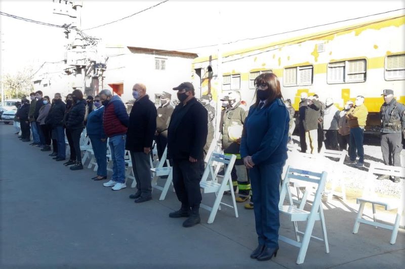 Asimismo, se realizó un minuto de silencio por los agentes fallecidos por covid de toda la provincia, para luego recordar al personal local fallecido por otros motivos, al enfermero Mariano Cabrera y al Adjutor Martín González. Los familiares de ambos recibieron una placas homenajes en nombre de la Unidad N° 5.