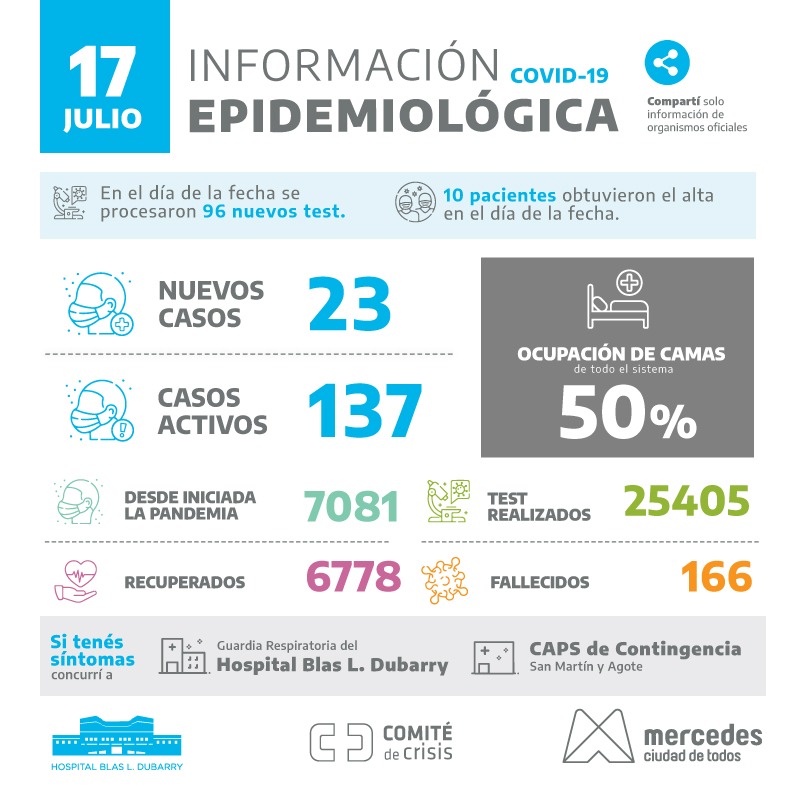 Covid: 23 nuevos positivos en Mercedes