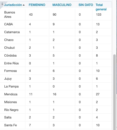 El reporte consignó que fallecieron 141 hombres y 84 mujeres. El parte precisó que murieron 90 hombres en la provincia de Buenos Aires; 9 en la Ciudad de Buenos Aires; uno en Catamarca; 2 en Chaco; uno en Chubut; 5 en Córdoba; uno en Entre Ríos; 6 en Formosa; 3 en Jujuy; 16 en Mendoza; uno en Misiones; uno en Río Negro; 2 en Salta y 3 en Santa Fe. También fallecieron 43 mujeres en Buenos Aires; 4 en la Ciudad de Buenos Aires; 1 en Catamarca; una en Chaco; 2 en Chubut; 3 en Córdoba; 4 en Formosa; 3 en Jujuy; una en La Pampa; 11 en Mendoza; una en Misiones; una en Río Negro; 2 en Salta y 7 en Santa Fe.
