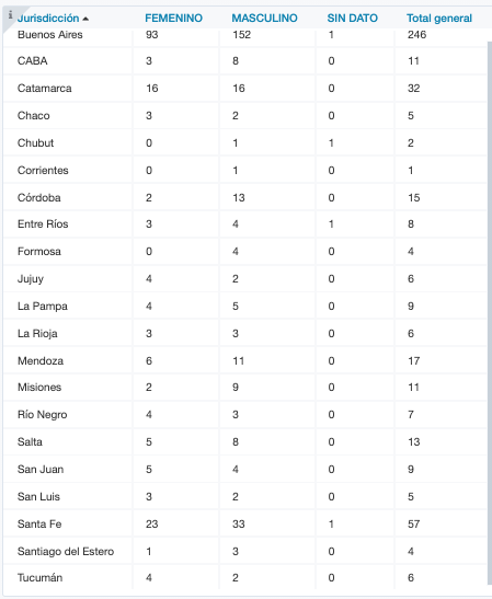 Del total de muertes reportadas hoy, 286 son hombres (152 son de la provincia de Buenos Aires, 8 de la ciudad de Buenos Aires, 16 de Catamarca, 2 de Chaco, 1 de Chubut, 1 de Corrientes, 13 de Córdoba, 4 de Entre Ríos, 4 de Formosa, 2 de Jujuy, 5 de La Pampa, 3 de La Rioja, 11 de Mendoza, 9 de Misiones, 3 de Río Negro, 8 de Salta, 4 de San Juan, 2 de San Luis, 33 de Santa Fe, 3 de Santiago del Estero y 2 de Tucumán) y 184 son mujeres (93 son de la provincia de Buenos Aires, 3 de la ciudad de Buenos Aires, 16 de Catamarca, 3 de Chaco, 2 de Córdoba, 3 de Entre Ríos, 4 de Jujuy, 4 de La Pampa, 3 de La Rioja, 6 de Mendoza, 2 de Misiones, 4 de Río Negro, 5 de Salta, 5 de San Juan, 3 de San Luis, 23 de Santa Fe, 1 de Santiago del Estero y 4 de Tucumán).