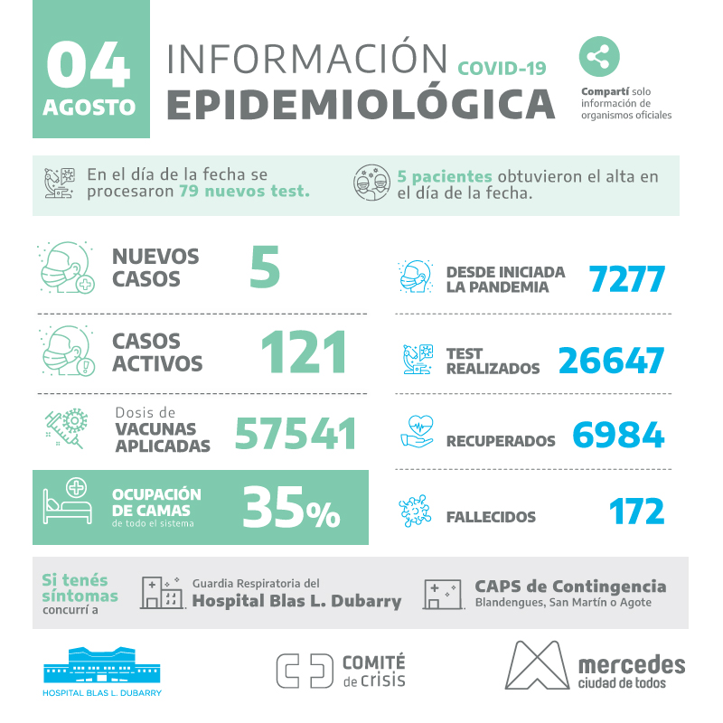En cuanto a la ocupación de camas arriba al 35% en terapia intensiva en el sistema de salud mercedino.