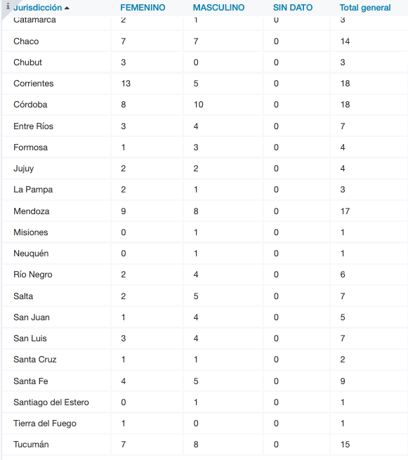 Del total de muertes reportadas hoy, 117 son hombres y 104 son mujeres. Dos personas residentes en la provincia de Buenos Aires fueron registradas sin datos de sexo. El parte precisó que murieron 36 en la provincia de Buenos Aires; 6 en la Ciudad de Buenos Aires; 1 en Catamarca; 7 en Chaco; 5 en Corrientes; 10 en Córdoba; 4 en Entre Ríos; 3 en Formosa; 2 en Jujuy; 1 en La Pampa; 8 en Mendoza; 1 en Misiones; 1 en Neuquén; 4 en Río Negro; 5 en Salta; 4 en San Juan; 4 en San Luis; 1 en Santa Cruz; 5 en Santa Fe; 1 en Santiago del Estero; y 8 en Tucumán. También fallecieron 30 mujeres en Buenos Aires; 3 en la Ciudad de Buenos Aires; 2 en Catamarca; 7 en Chaco; 3 en Chubut; 13 en Corrientes; 8 en Córdoba; 3 en Entre Ríos; 1 en Formosa; 2 en Jujuy; 2 en La Pampa; 9 en Mendoza; 2 en Río Negro; 2 en Salta; 1 en San Juan; 3 en San Luis; 1 en Santa Cruz; 4 en Santa Fe; 1 en Tierra del Fuego; y 7 en Tucumán.