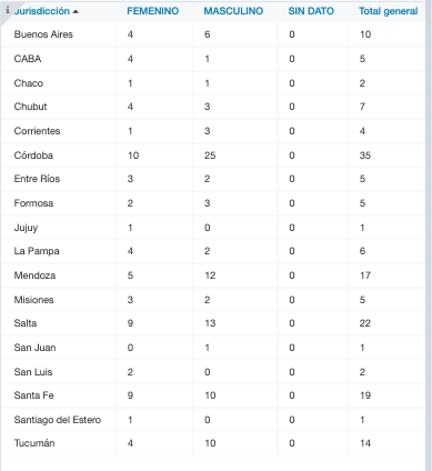Del total de fallecimiento reportados este miércoles, 94 son hombres (seis de la provincia de Buenos Aires, uno de la ciudad de Buenos Aires, uno de Chaco, tres de Chubut, tres de Corrientes, 25 de Córdoba, dos de Entre Ríos, tres de Formosa, dos de La Pampa, 12 de Mendoza, dos de Misiones, 13 de Salta, uno de San Juan, 10 de Santa Fe y 10 de Tucumán) y 67 son mujeres (cuatro de la provincia de Buenos Aires, cuatro de la ciudad de Buenos Aires, una de Chaco, cuatro de Chubut, una de Corrientes, 10 de Córdoba, tres de Entre Ríos, dos de Formosa, una de Jujuy, cuatro de La Pampa, cinco de Mendoza, tres de Misiones, nueve de Salta, dos de San Luis, nueve de Santa Fe, una de Santiago del Estero y cuatro de Tucumán).