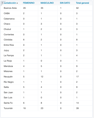 El reporte confirmó el fallecimiento de 103 son hombres (35 de la provincia de Buenos Aires, uno de la ciudad de Buenos Aires, uno de Catamarca, tres de Chaco, dos de Chubut, uno de Corrientes, dos de Córdoba, uno de Entre Ríos, uno de Jujuy, uno de La Pampa, cinco de Mendoza, uno de Misiones, doce de Neuquén, uno de Río Negro, cuatro de Salta, uno de San Juan, ocho de Santa Fe y 23 de Tucumán) y 80 son mujeres (26 de la provincia de Buenos Aires, dos de la ciudad de Buenos Aires, una de Chubut, seos de Córdoba, dos de Jujuy, dos de La Pampa, una de La Rioja, cuatro de Mendoza, una de Misiones, cinco de Neuquén, 1 de Río Negro, cinco de Salta, uno de San Juan, uno de San Luis, seis de Santa Fe y 26 de Tucumán). Además, una persona fallecida de la provincia de Buenos Aires y otra de La Pampa fueron registradas sin dato de sexo.
