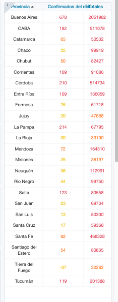 De los 2.308 nuevos contagios notificados esta tarde, 678 son de la provincia de Buenos Aires, 182 de la ciudad de Buenos Aires, 65 de Catamarca, 35 de Chaco, 50 de Chubut, 109 de Corrientes, 210 de Córdoba, 109 de Entre Ríos, 25 de Formosa, 20 de Jujuy, 214 de La Pampa, 30 de La Rioja, 72 de Mendoza, 25 de Misiones, 36 de Neuquén, 44 de Río Negro, 123 de Salta, 23 de San Juan, 13 de San Luis, 17 de Santa Cruz, 92 de Santa Fe, 54 de Santiago del Estero, -37 de Tierra del Fuego y 119 de Tucumán.