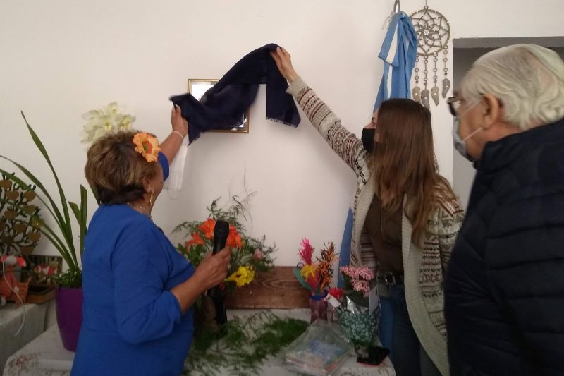 «Queremos hacerle un breve homenaje a nuestra muy querida Hilda de Romans. Vamos a descubrir una placa junto a Jorge Romans, su marido, y su hija», expresó Rosa mientras todos aplaudían y ella junto a la familia Romans descubrían la placa que imponía el nombre de Hilda de Romans a la sala de uso común del Centro de Jubilados.