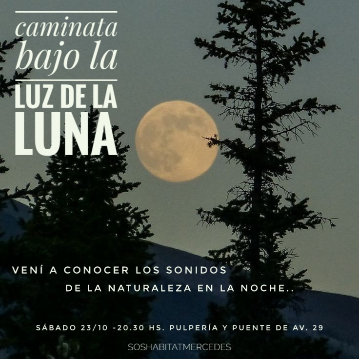 Desde la Asociación Civil S.O.S. Hábitat invitan a realizar el próximo 23 de octubre, a partir de la hora 20:30, a una actividad que tiene como objetivo caminar «bajo la luz de la luna». Desde el puente que cruza el Río Luján en la Pulpería de Cacho Dicatarina, el grupo ambiental propone conocer los sonidos de la naturaleza en una noche de primavera.