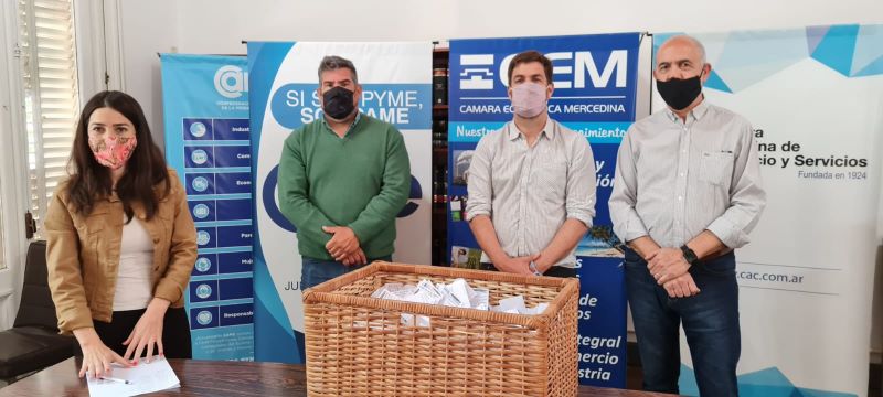 Con la presencia del presidente a la CEM Mario Dimaro, el Intendente Municipal Juan Ignacio Ustarroz, el Gerente General Ariel Pietrucha y la coordinadora de la Subcomisión de Comercio de la institución, Paula Arretche, se llevó adelante el sorteo de órdenes de compra por un total de 80 mil pesos y una bicicleta brindada por el Municipio de Mercedes. Dicho sorteo pudo verse en vivo desde las redes sociales de la Cámara.