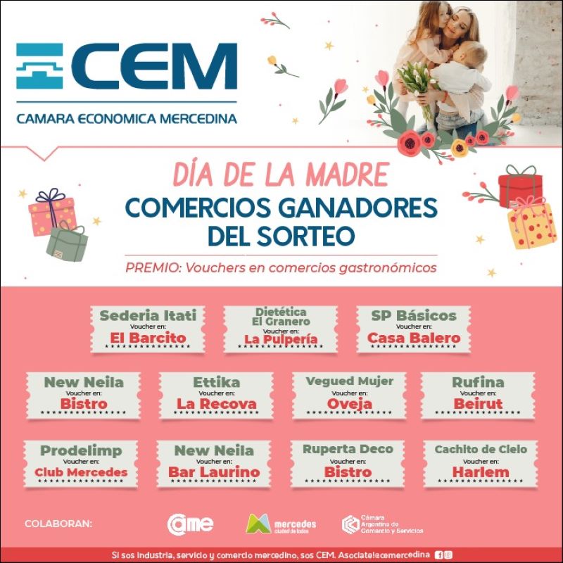 En cada cupón sorteado, se completaba con el comercio que le había entregado el cupón. Los comercios cuyos cupones fueron beneficiados, también tuvieron premios. Cada uno de esos comercios ganó un voucher para asistir a los comercios gastronómicos que participaron de la acción comercial por el Día de la Madre.