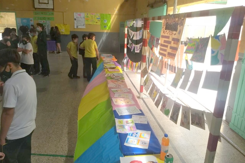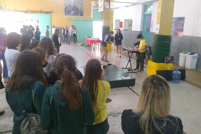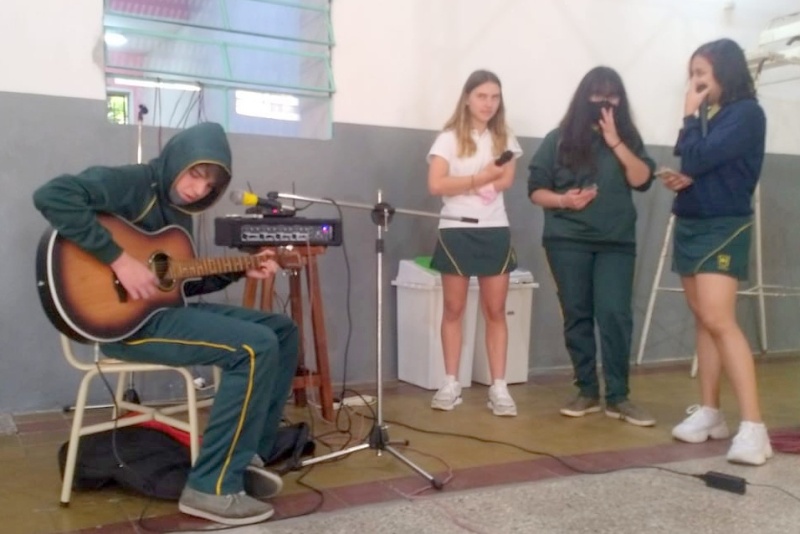 Por su parte, la profesora de música Karina Minón desplegó con sus alumnos un trabajo de percusión con un sistema de señas. La música estuvo presente todo el tiempo de la muestra, con alumnos que cantaron y ejecutaron sus propios instrumentos en un mini escenario dispuesto. Desde el área de Literatura se pudieron ver intervenciones en libros con diferentes temáticas, radioteatro y podcast.