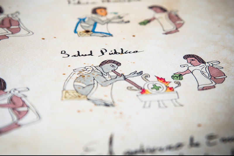 La muestra “El eterno retorno del Nuevo Mundo”, que podrá visitarse hasta el 18 de abril, plantea un diálogo entre las obras de artistas internacionales como la italiana Elena Mazzi con su propuesta titulada “Silver Rights”, realizada junto con la comunidad mapuche, en relación con los conflictos territoriales que mantienen con la multinacional Benetton; una proyecto del artista mexicano Gabriel Garcilazo, llamado “Códice FMI”, que retoma los formatos e iconografía de los códices mayas y aztecas para contar a través del dibujo la historia de opresión en México ligada a los préstamos del Fondo Monetario Internacional; una selección de obras de Carlos Colín titulada “Panoplia de posibilidades”, que cuestiona el valor, la representación y el significado de los objetos indígenas en el contexto de las colecciones antropológicas, museológicas o privadas que pueden entenderse como una panoplia; y una selección de obras de Mauricio Poblete, pintor, dibujante y performer oriundo de Mendoza, entre otras.