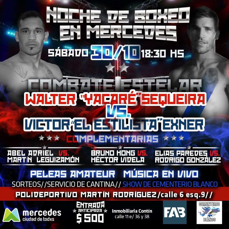 En la tarde del viernes se llevó adelante la ceremonia del pesaje para la pelea de boxeo que habrá en la noche del sábado el Martín Rodríguez. En La Pulpería de «Cacho Di Catarina» con la inspección de Jesuan Letizia por la Federación Argentina de Box (FAB) controlaron los pesos para definir la categoría de Walter «Yacaré» Sequeira y Victor «El Estilista» Exner.
