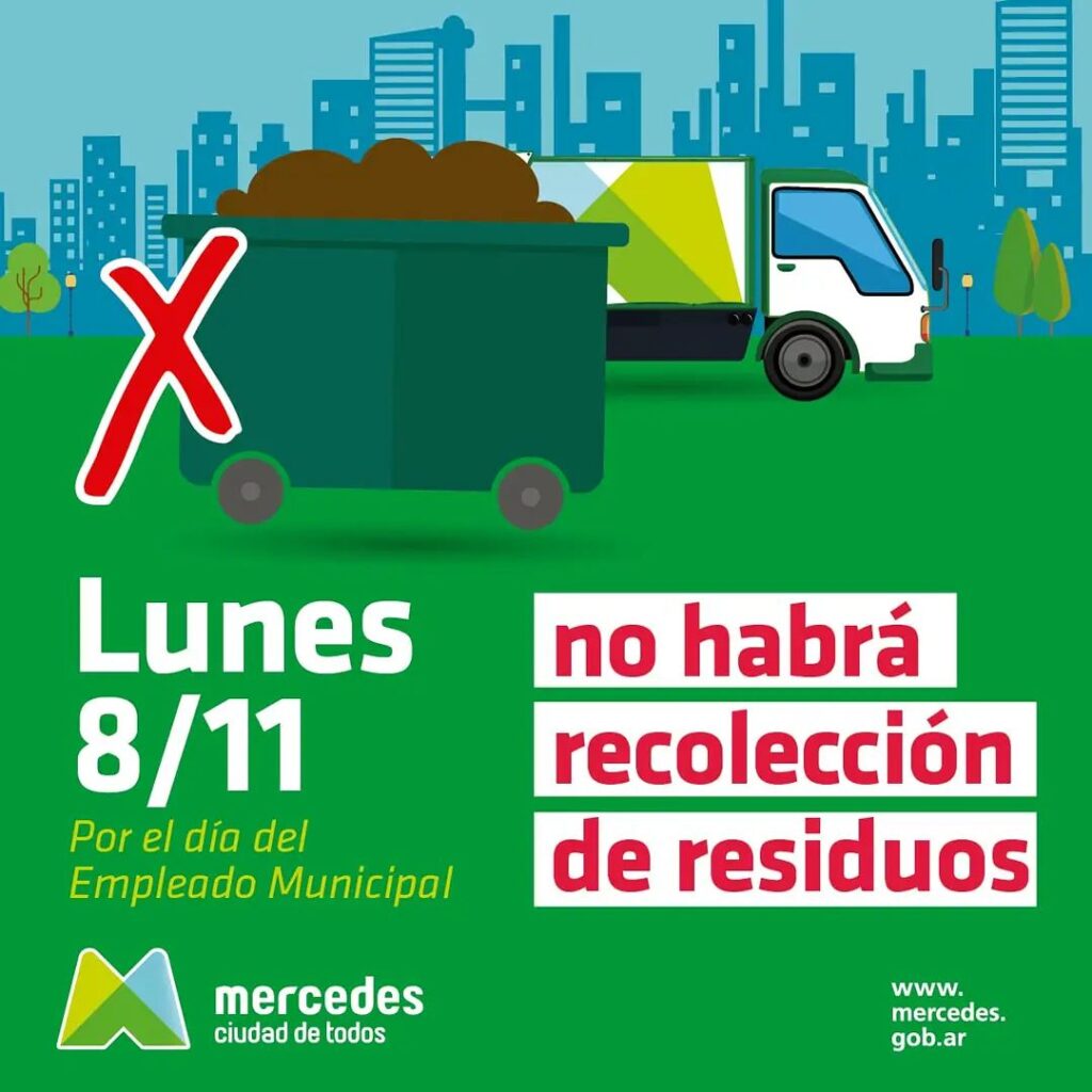 Por celebrarse el Día del Municipal, el 8 de noviembre, que este año es lunes, el Municipio de Mercedes le da asueto a sus trabajadores y por lo tanto, sus oficinas estarán cerradas y el servicio a la comunidad se verá reducido. Es así que ya confirmaron que el lunes no habrá recolección de residuos.