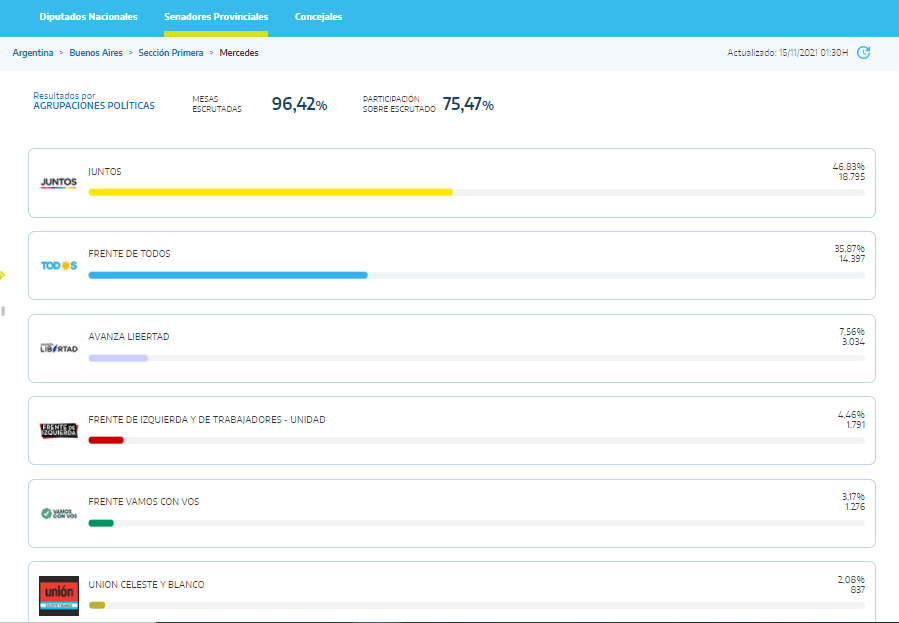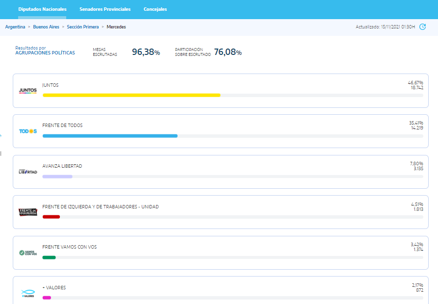 Resultados en Mercedes para la elección de Diputados Nacionales por la provincia de Buenos Aires.