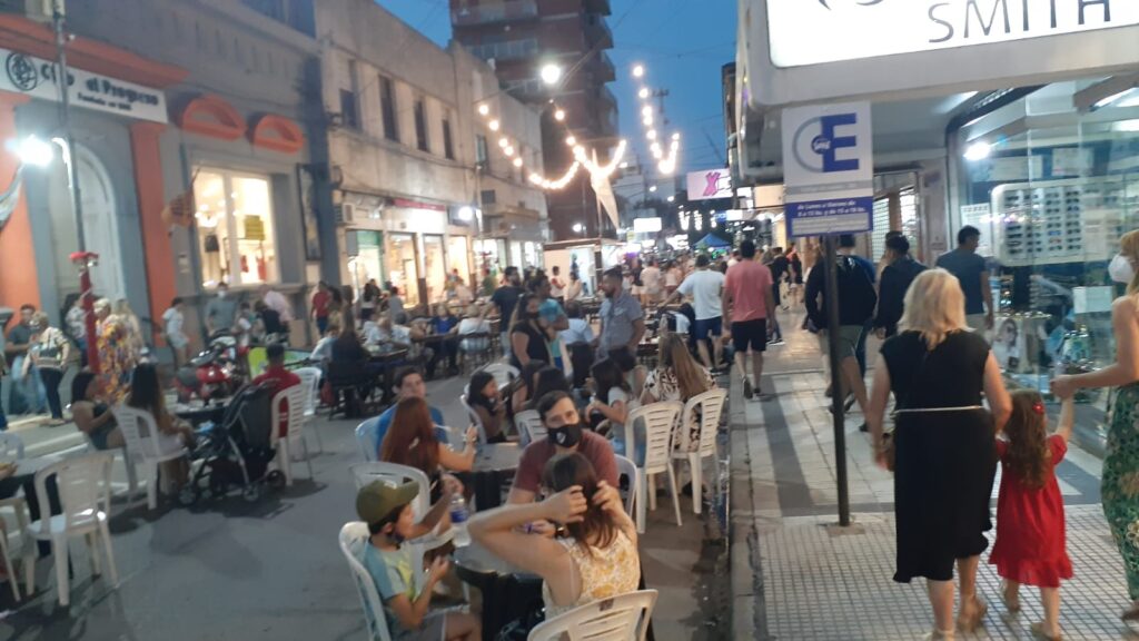 La calle 25 devenida en peatonal permitió que los vecinos puedan comprar, pasear y recorrer en familia durante el día y la noche del sábado. En el escenario de 25 y 16 se sorteó un SmartTV 50”, dos parlantes bluetooth y once órdenes de compras con un total de 110 mil pesos con los cupones entregados por los comercios adheridos.