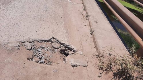 Vecinos de la zona rural de San Jacinto están reclamando por roturas en el puente que cruza el Río Luján, cruce de la ruta 42 que une Mercedes con Chacabuco y que permite el ingreso a Franklin.