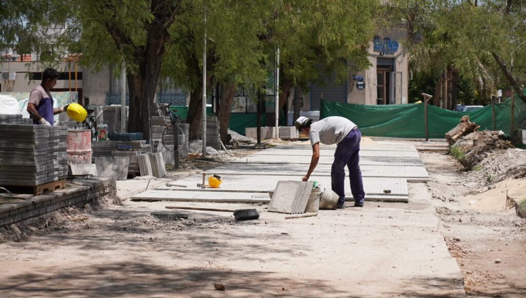 El intendente interino, Matías Dematei, y el Secretario de Obras, Emanuel Pérez Carrera, recorrieron las obras. Dematei recordó la obras realizadas en 2019, época en la que él era el responsable del área y enfatizó en la necesidad de recambiar las baldosas de la vereda.