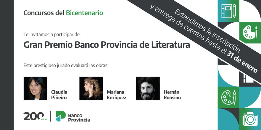 Información oficial- La nueva fecha de cierre de inscripción y entrega de cuentos del Gran Premio Banco Provincia de Literatura se extendió hasta el próximo 31 de enero. Ya se presentaron más de mil obras sobre la identidad bonaerense.
