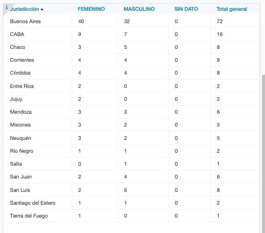 El parte precisó que murieron 72 hombres, 32 en Buenos Aires, siete en la Ciudad de Buenos Aires, cinco en Chaco, cuatro en Corrientes, cuatro en Córdoba, tres en Mendoza, dos en Misiones, dos en Neuquén, uno en Río Negro, uno en Salta, cuatro en San Juan, seis en San Luis, y uno en Santiago del Estero. También fallecieron 80 mujeres: 40 en Buenos Aires, nueve en la Ciudad de Buenos Aires, tres en Chaco, cuatro en Corrientes, cuatro en Córdoba, dos en Entre Ríos, dos en Jujuy, tres en Mendoza, tres en Misiones, tres en Neuquén, una en Río Negro, dos en San Juan, dos en San Luis, una en Santiago del Estero, y una en Tierra del Fuego.