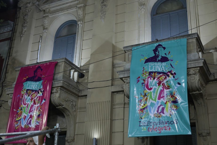 Fernando Luna también estuvo presente en los carnavales mercedinos. Durante las cuatro noches se pasaron grabaciones de cómo presentaba y arengaba a las y los vecinos a disfrutar de esta fiesta popular por excelencia que durante décadas lo tuvo como voz principal y protagonista destacado. También se vistió el palacio municipal con su figura, con cuatro grandes gigantografías saliendo de los balcones con mucho color y su inconfundible figura.