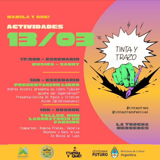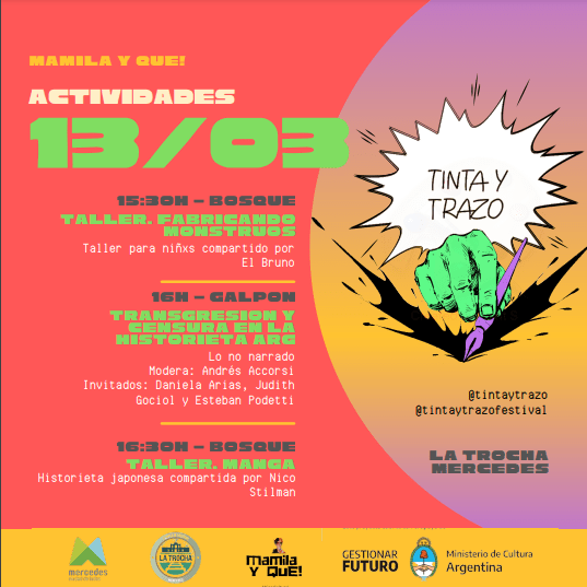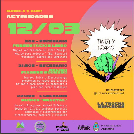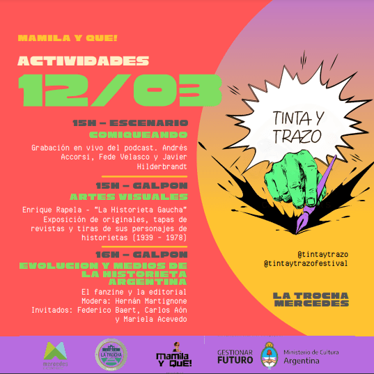Con invitados referentes de la historieta, el sábado arranca la 1° edición del Festival de Historieta “Tinta y Trazo” en Mercedes. Entre las actividades propuestas para el fin de semana habrá feria de historietas y fanzines, charlas, presentaciones de libros, talleres, radio en vivo y música. Entre los artistas que van a formar parte de este Festival, se encuentra el reconocido dibujante e historietista Miguel Rep que estará en uno de los conversatorios y presentará su libro sobre Maradona “Diego: nacido para molestar”.